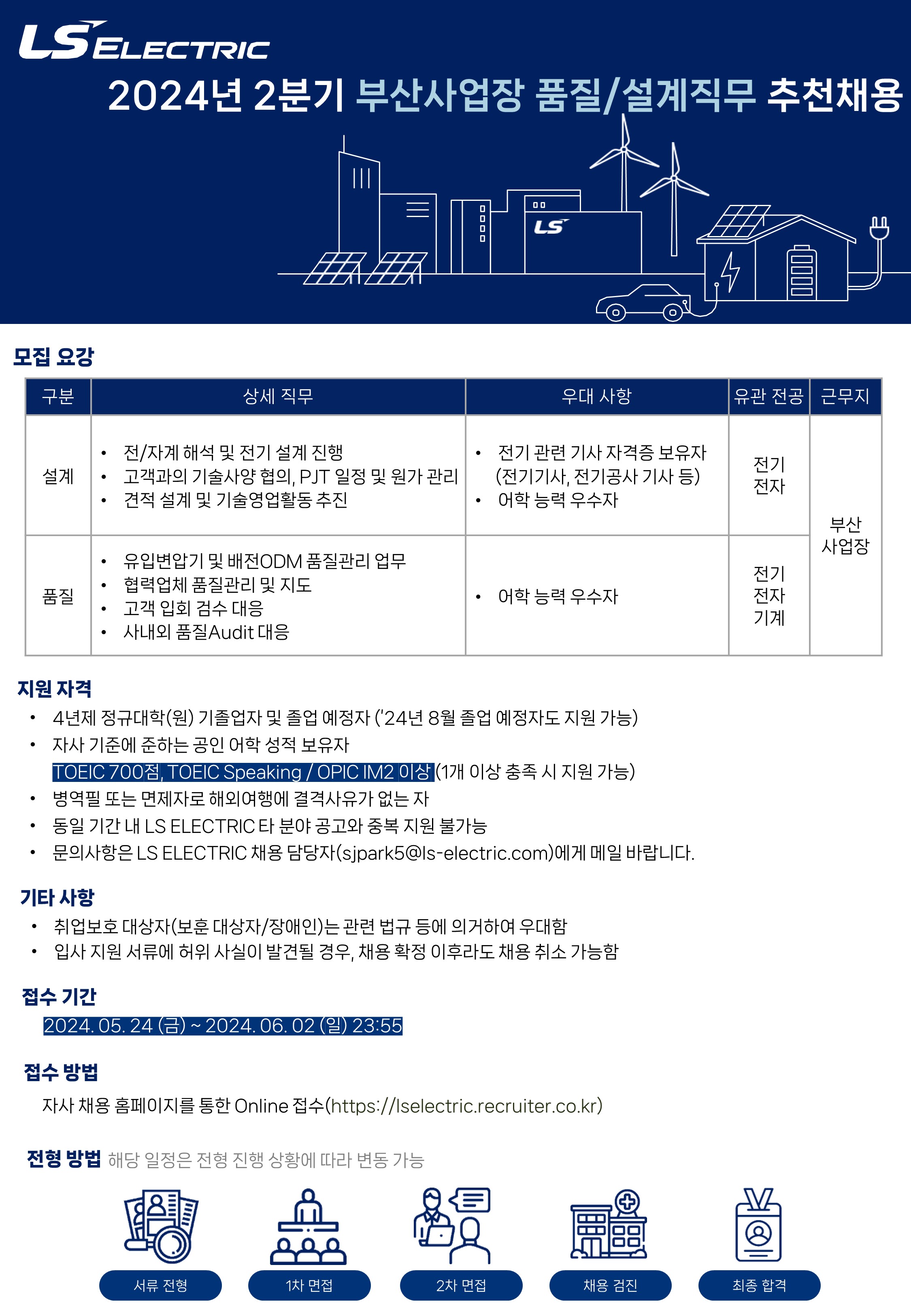LS ELECTRIC의 추천채용을 아래와 같이 알립니다.
