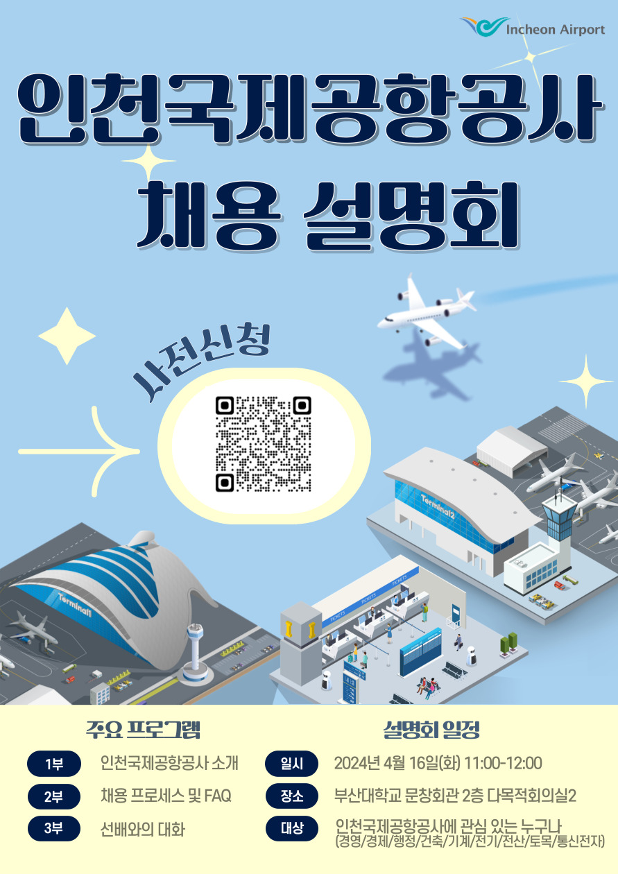 인천국제공항공사 채용설명회 일정을 아래와 같이 알립니다.