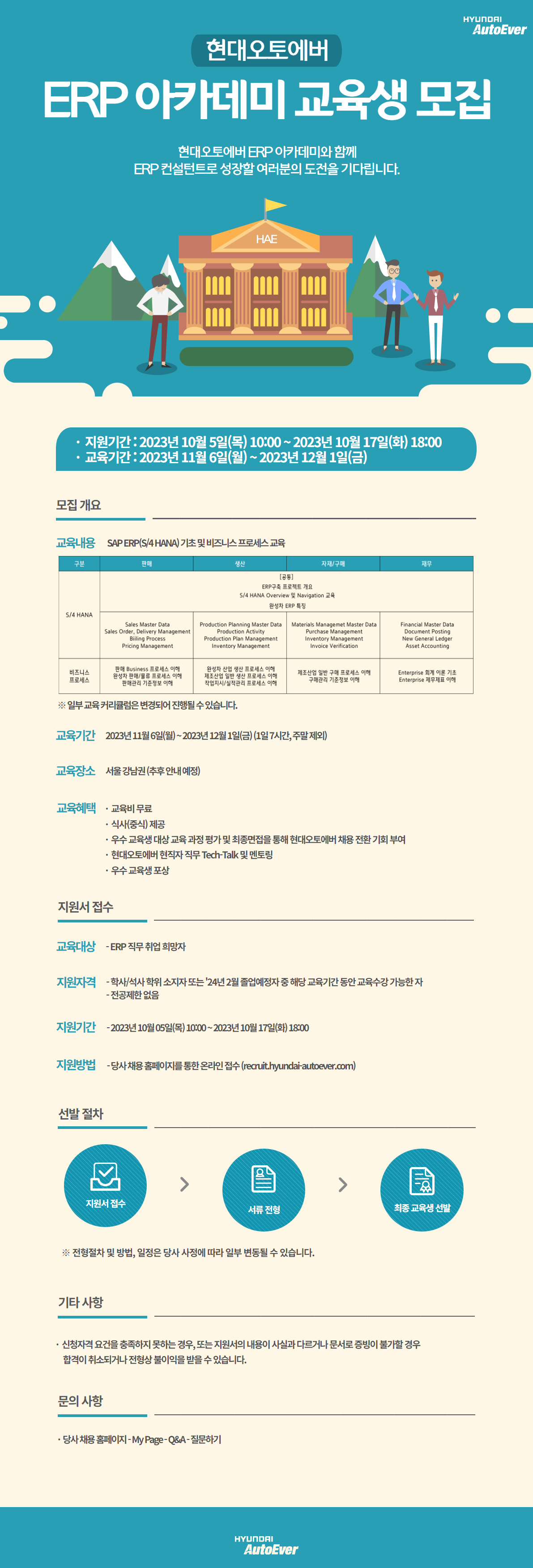 fnctId=bbs,fnctNo=2655 작성일 2023.10.06 수정일 2023.10.06 작성자 안수연 조회수 2087 현대오토에버 ERP 아카데미 교육생 모집 첨부파일 첨부파일이(가) 없습니다.